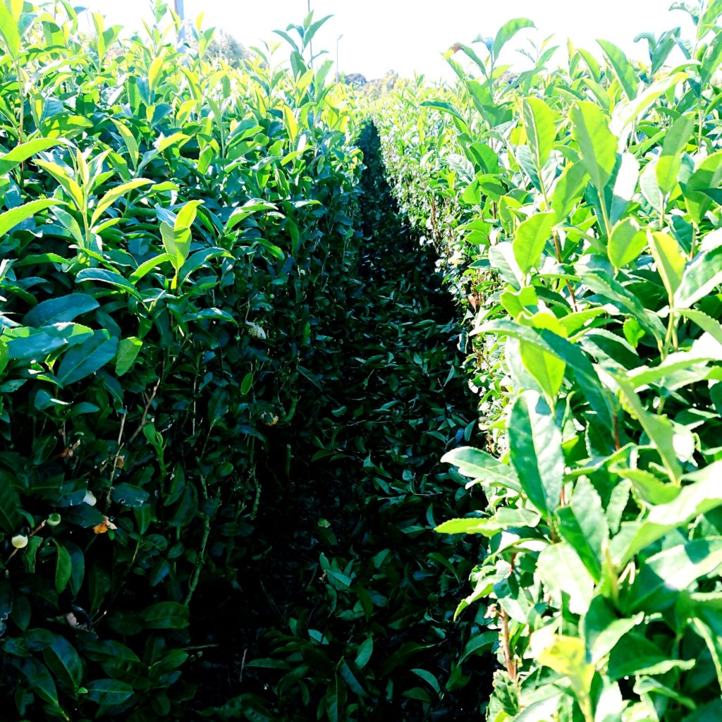 今日は茶の木の横の部分に生えてきた葉っぱを刈り落とす作業「裾刈り」の最終日でした。